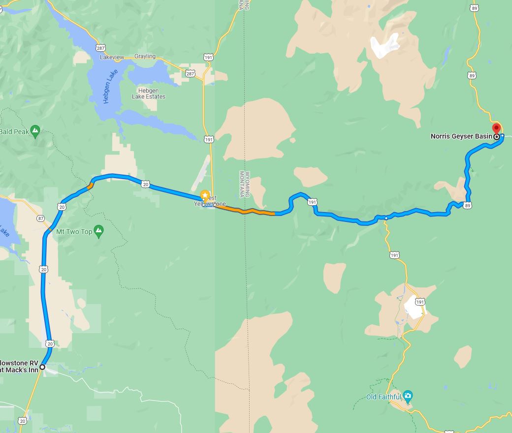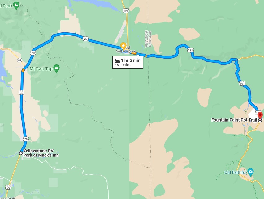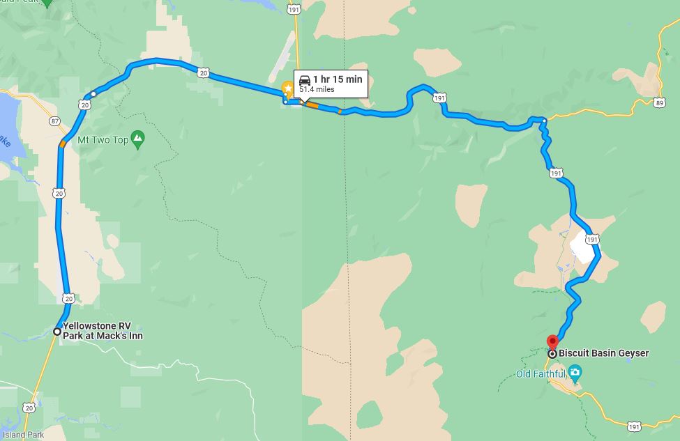 Biscuit Basin is on the way to Old Faithful and is about 1.2 hours drive from our RV Park.