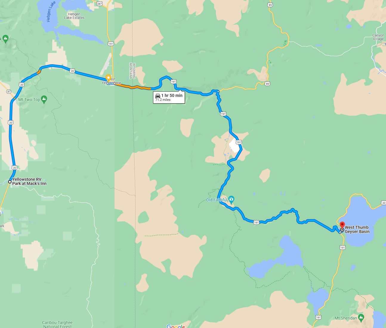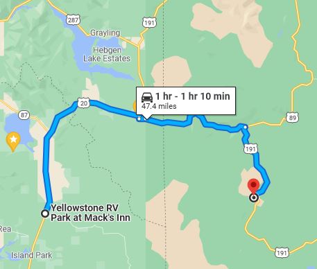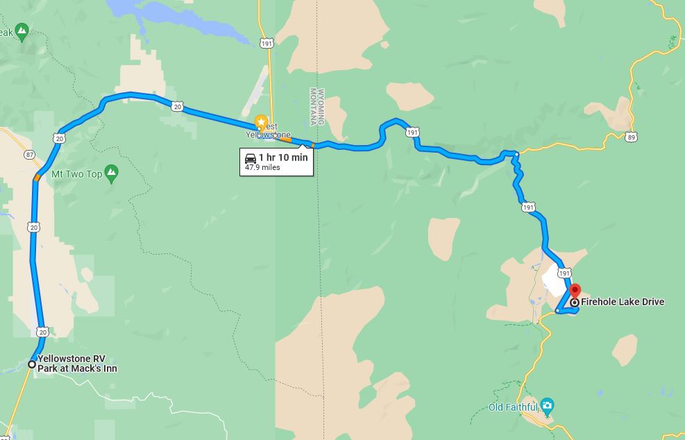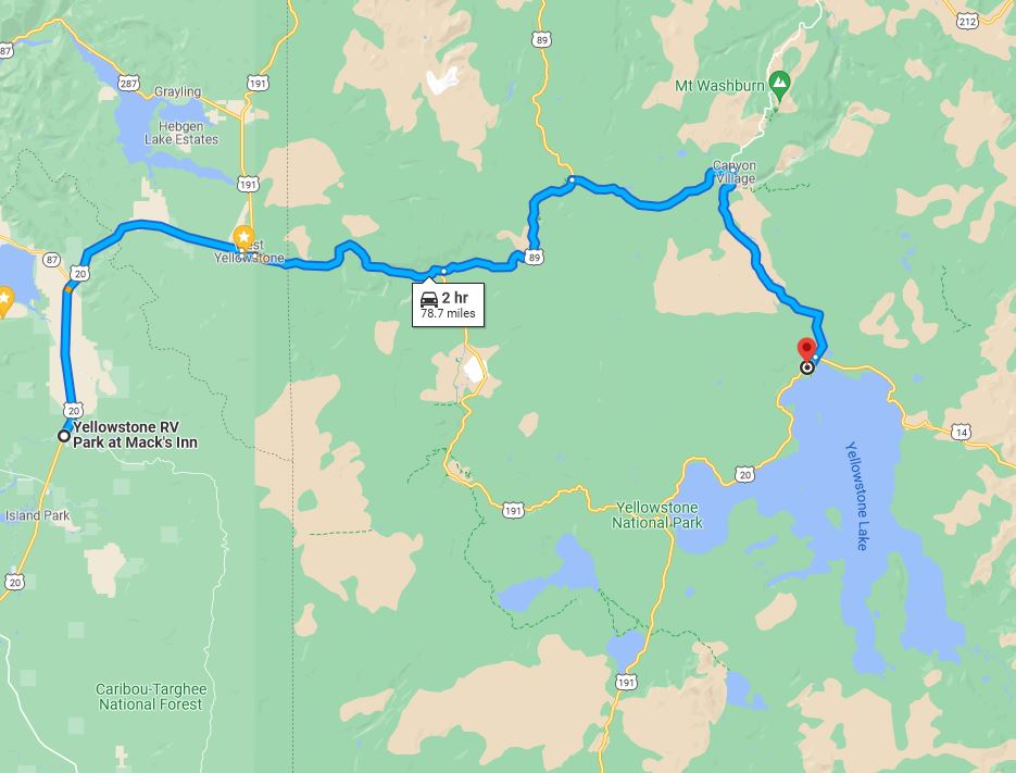 You can reach the shores of Yellowstone Lake from our RV Park in about 2 hours.