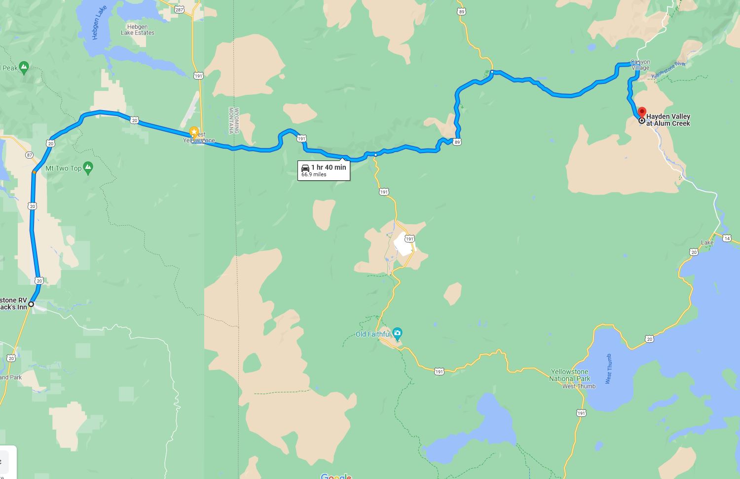 Hayden Valley is about 1.75 hours drive from our RV Park.
